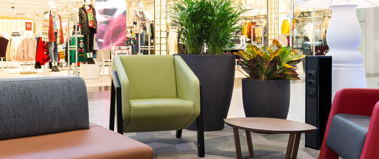Каждая из четырех зон отдыха Торгового центра имеет свое предназначение и свое настроение. Дизайнеры магазина уделяют особое внимание подбору мебели, напольного покрытия, предметов декора, цветам и качеству материалов.