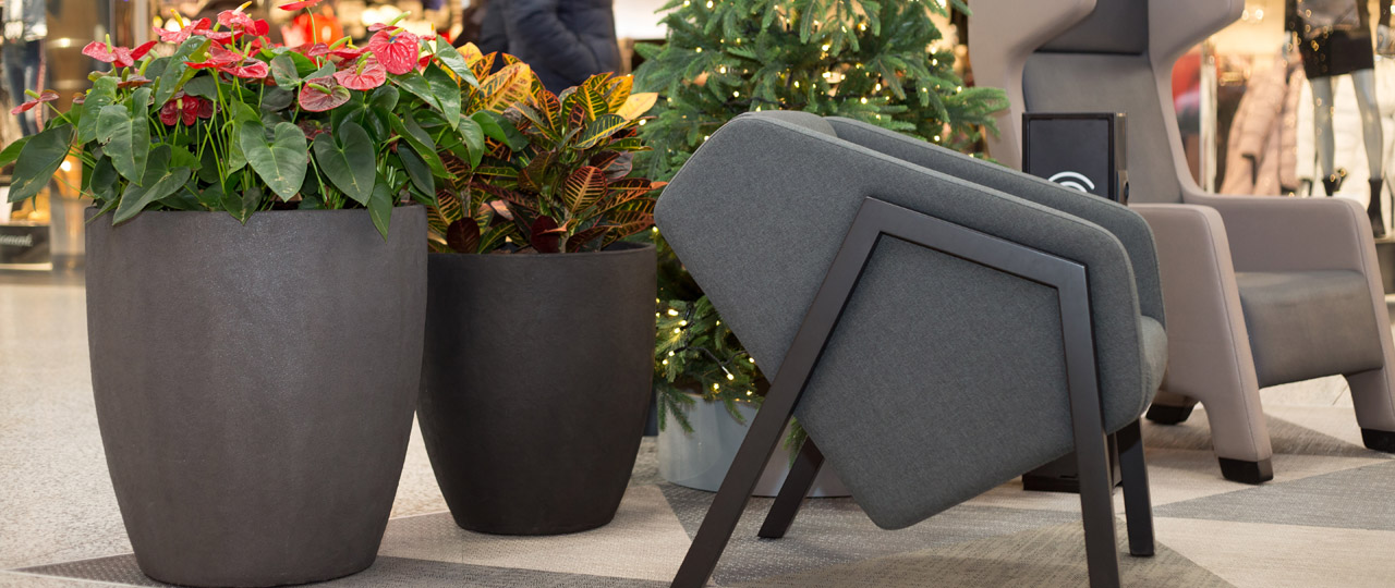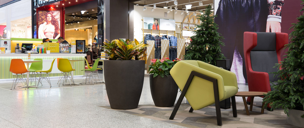 Кашпо CONCRETIKA в зонах отдыха в крупного торгового центра Санкт-Петербурга
